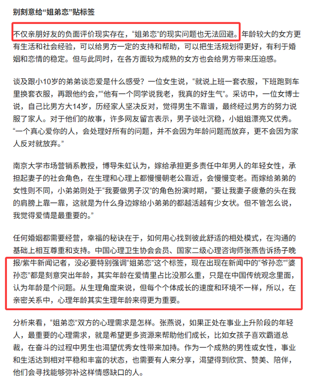 通过娱乐圈这些姐弟恋的事例,这反映出一个现实问题。