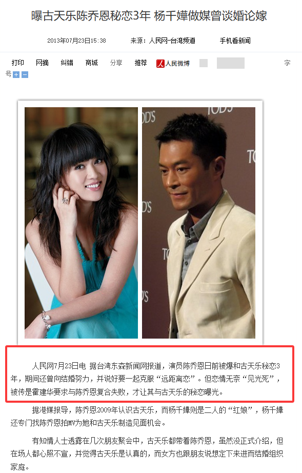 如果不是台湾媒体的报道,陈乔恩和古天乐隐藏三年的恋情就不会曝光。