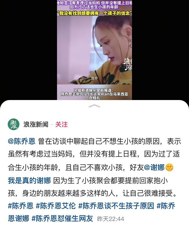 而近日,被外界言论骚扰已久的陈乔恩回应了自己为何没有生孩子。