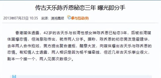 可惜古天乐和陈乔恩的恋情却有些“见光死”。